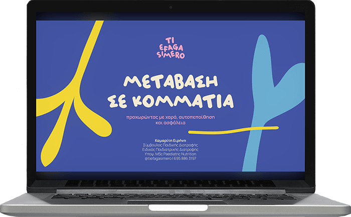 Πόσο γλυκιά και μεταδοτική η Ειρήνη μας! Το σεμινάριο μας βοήθησε πάρα πολύ κατά την εισαγωγή των στερεών και μας έδιωξε το άγχος! Το μωράκι μου δεν έτρωγε στην αρχή και με κάποιες συμβουλές της Ειρήνης ξεκινήσαμε να τρώμε ικανοποιητικά! Επίσης το βιβλίο με τις συνταγές υπέροχο για μικρούς αλλά και για μεγάλους! Ευχαριστούμε τόσο πολύ για όλα!