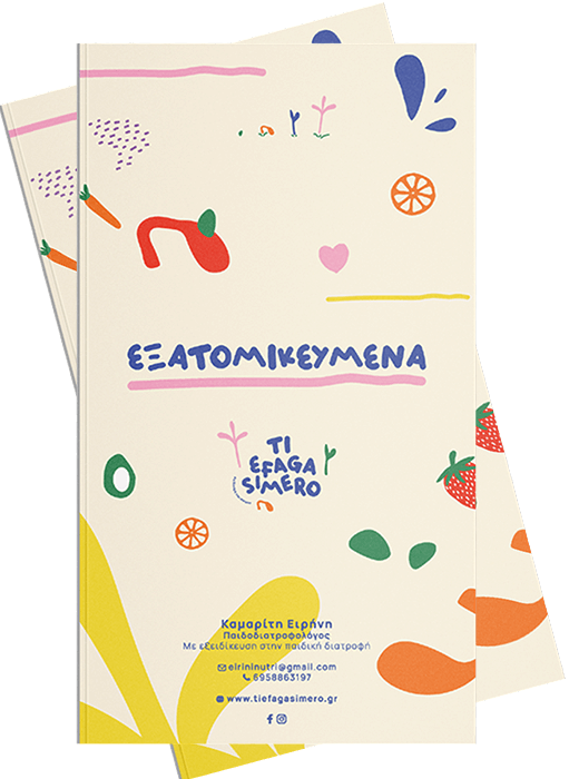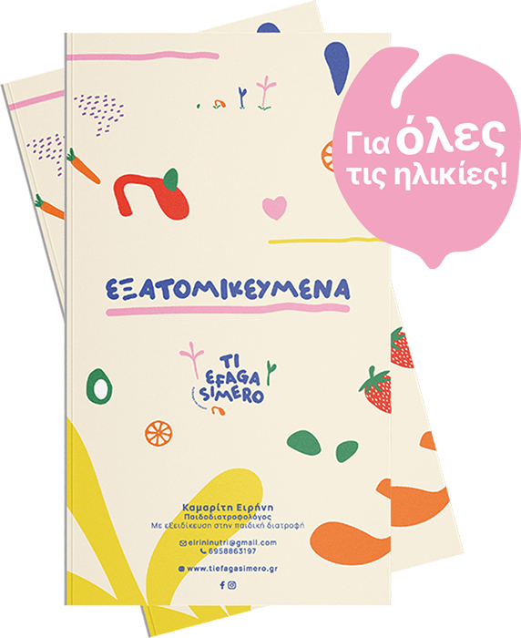 Ένα πλήρως προσαρμοσμένο βιβλίο στις ανάγκες και το αναπτυξιακό στάδιο του παιδιού σου. Πρωινά, μεσημεριανά, σνακ και κυρίως γεύματα, φτιαγμένα ειδικά για εκείνο.